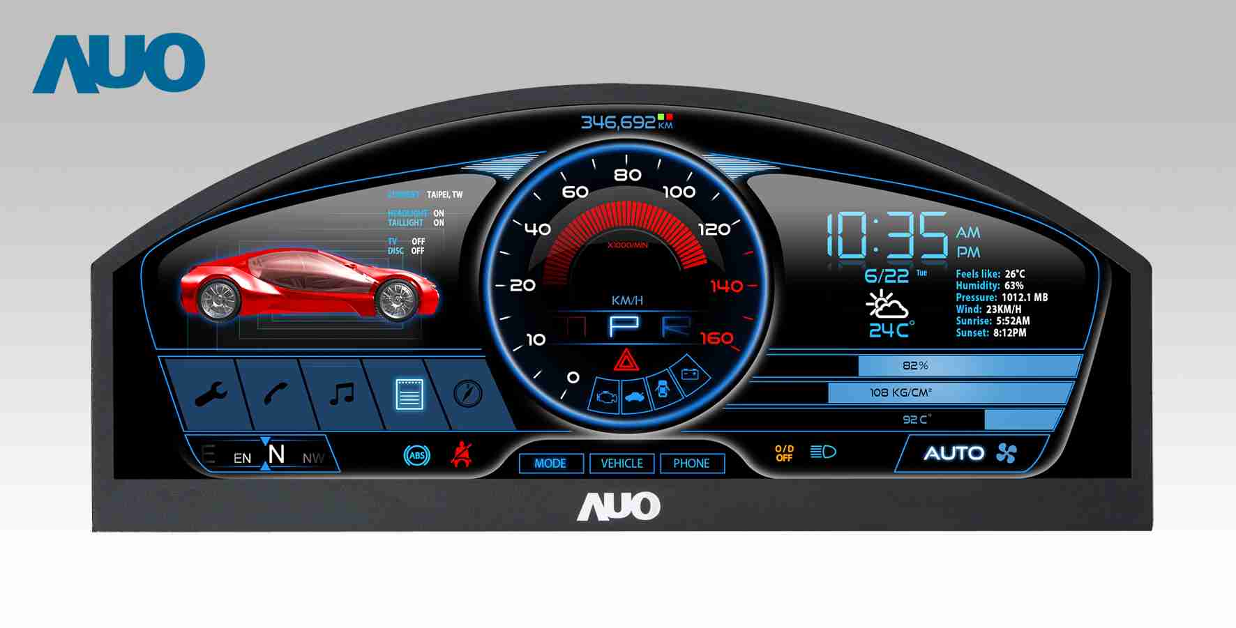 至成国际 12.3吋超高解析异型切割车用面板,,,,拥有流线外观及精细画质